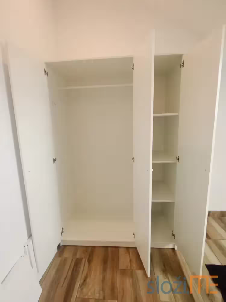 Sastavili smo IKEA Kleppstad ormar s troje klasična bijela vrata. Ormar uključuje prostor za vješanje odjeće te odjeljak s policama za dodatnu pohranu. Montaža je izvedena uredno i bez nekih velikih problema prilikom montaže a s pažnjom posvećenom na funkcionalnost i dugotrajnost.