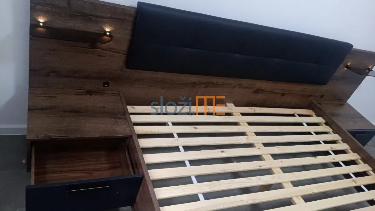Složili smo veliki bračni krevet iz namjestaj.hr, iz kolekcije Livmoru, prava stvar za sve koji vole tamne tonove i robusni dizajn. Korpuis kreveta je napravljena od modernog dizajna hrasta. Njegovi crni rubovi daju ozbiljost samom krevetu i daju osjećav visoke kvalitete.