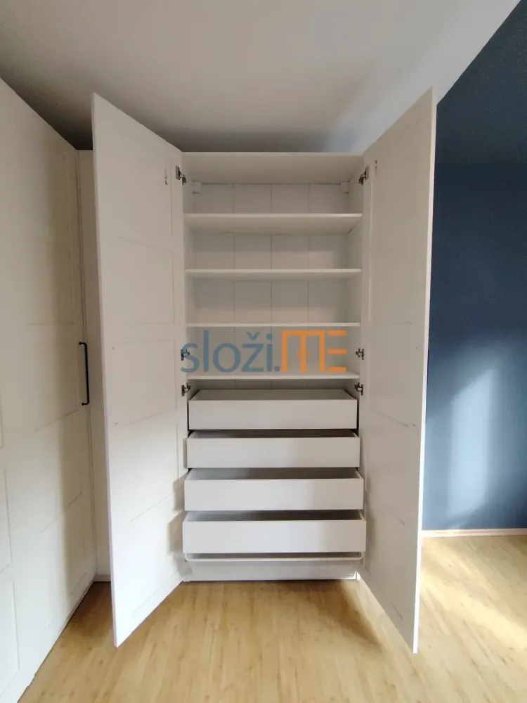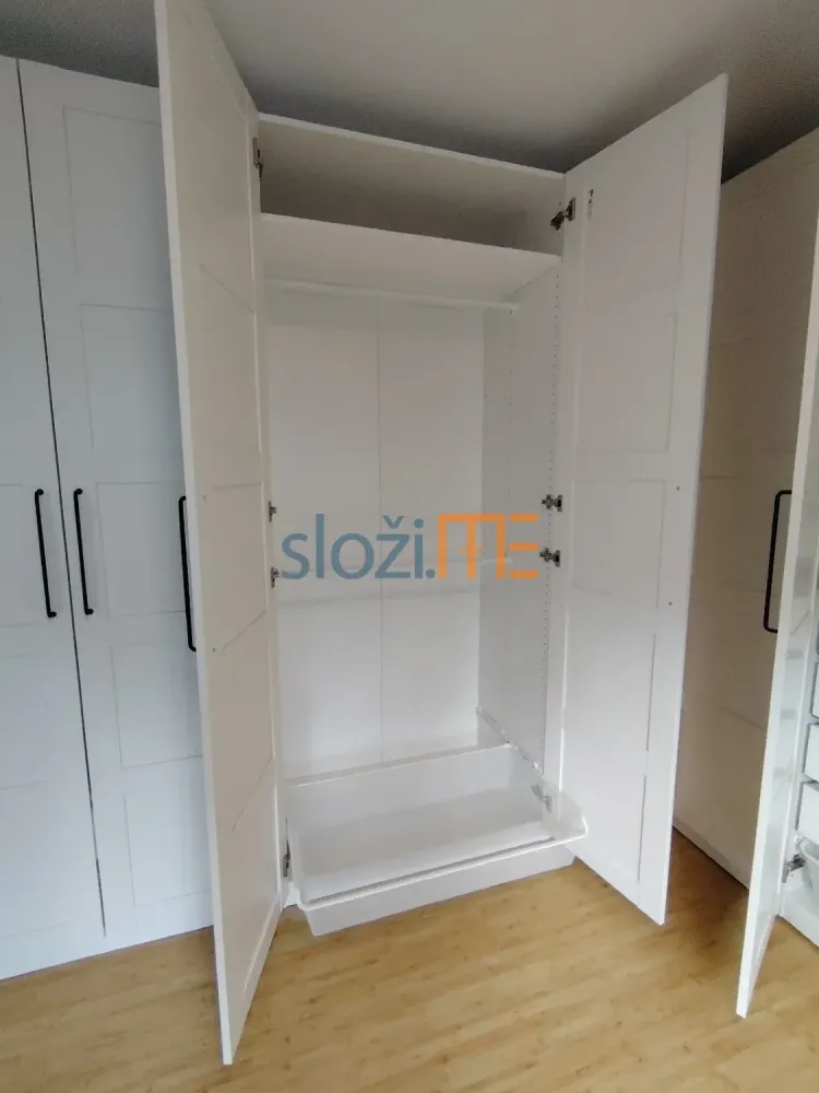 Na ovoj stranici možete vidjeti primjer montaže kutnog ormara iz Ikea PAX serije, izvedene u prostoru prema specifikacijama klijenta.