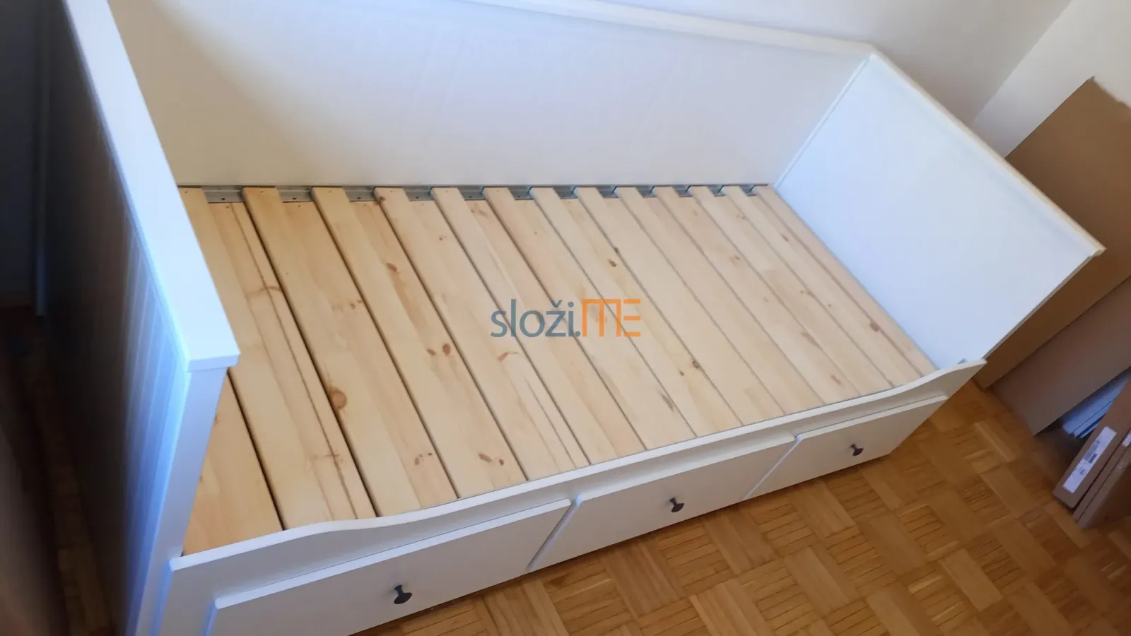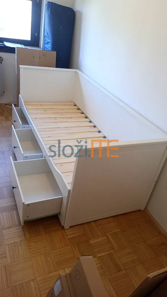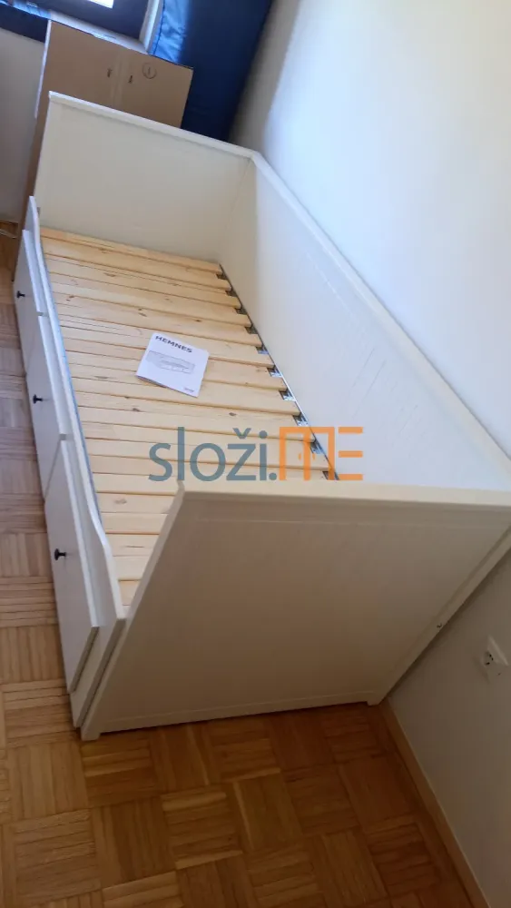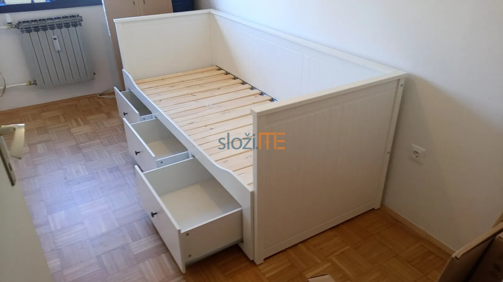 Za klijenta u centru Zagreba složili smo Ikea Hemnes krevet s ladicama za pohranu. Osim što je čvrst i udoban, krevet nudi i dodatni prostor za odlaganje stvari s izvlačnim ladicama. Također krevet ima mogućnost proširenja prostora za spavanje koje se omogućuje vrlo jednostavnim izvlačenjem donjeg dijela kreveta.