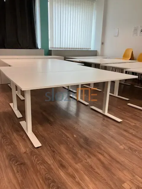 Složili smo Ikea radne stolove Trotten (160x80 cm) koji savršeno kombinira fleksibilnost i praktičnost u vašem radnom prostoru. Promjena položaja iz sjedenja u stajanje poboljšava vašu produktivnost i zdravlje, a sve to jednostavno podešavate pomoću ručice koja omogućava lako podizanje i spuštanje stola. Podesiva visina stola potiče kretanje, koje pozitivno utječe na raspoloženje i efikasnost rada. S bijelom površinom, stol se savršeno uklapa u svaki prostor, pružajući čist, moderan i minimalistički izgled.