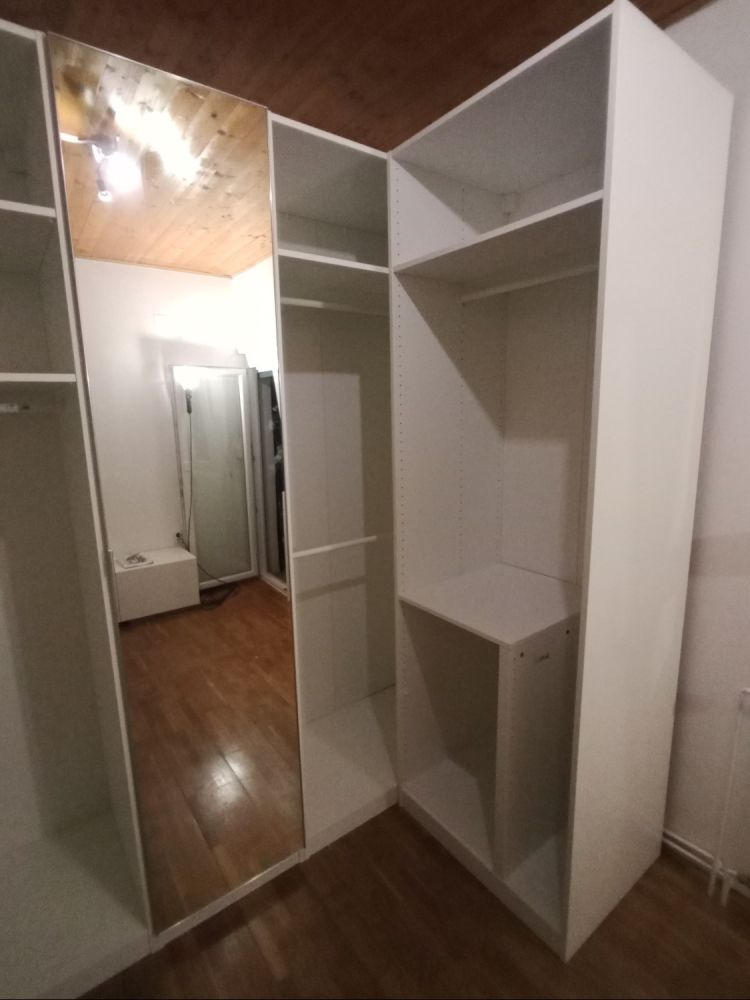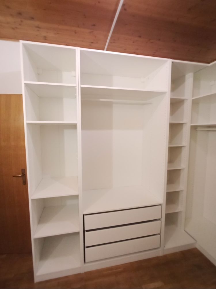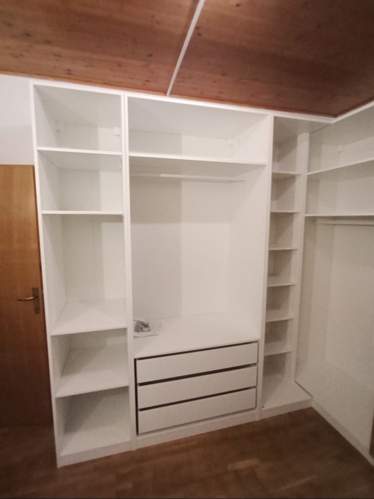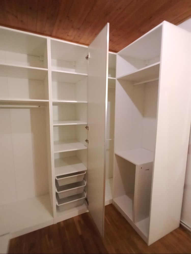 U ovom projektu imali smo zadovoljstvo transformirati dio sobe našeg klijenta u funkcionalan i elegantan walk-in ormar koristeći prilagodljivi Ikea PAX sustav. Bijela boja ormara doprinosi prozračnosti i svjetlini prostora, stvarajući osjećaj prostranosti i čistoće.